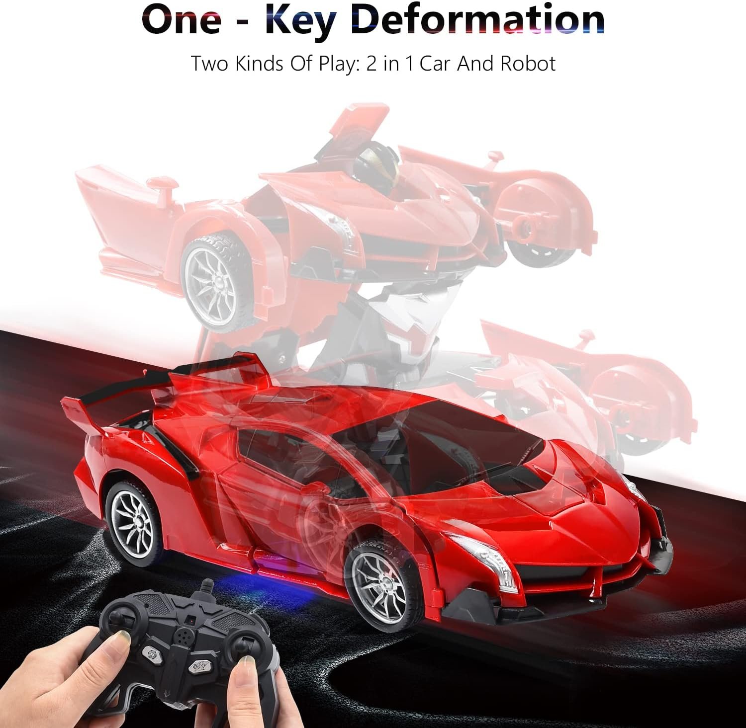• Cool design & intelligent Experience:1:18 remote control deformation car uses high-quality drop-resistant materials, which is safe and reliable for children. With a sense of technology, it is both a toy and a car model. Lights with realistic engine sounds. The whole process is accompanied by intelligence, allowing children to open their brains and experience the fun of technology.